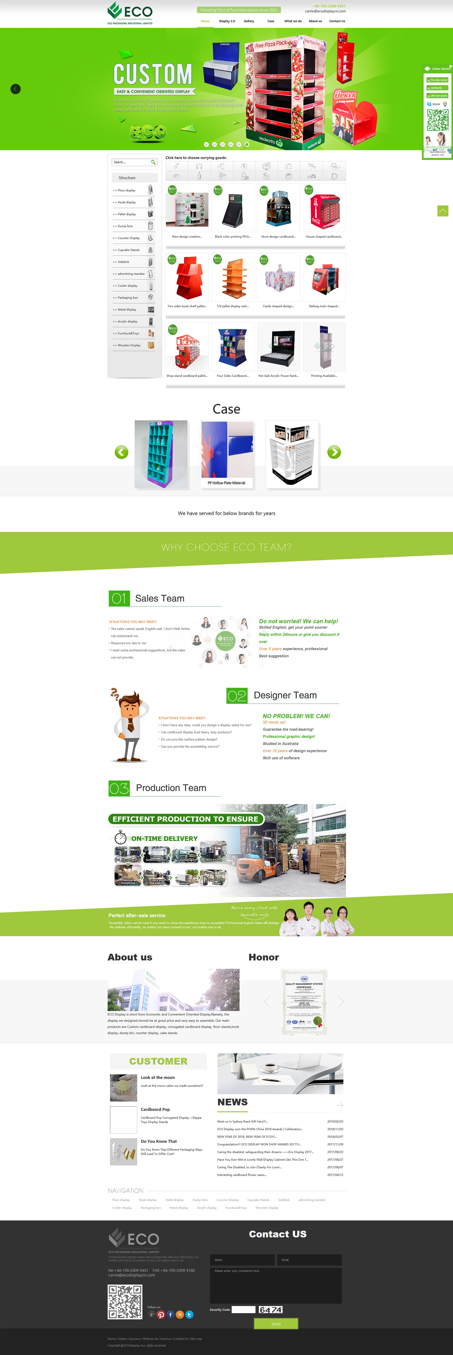 結(jié)合易扣展示的logo元素及紙展示架的行業(yè)屬性,將網(wǎng)站制作主色調(diào)定位綠色,將白灰色作為輔助色,網(wǎng)站制作風(fēng)格保持著簡約大氣的風(fēng)格。