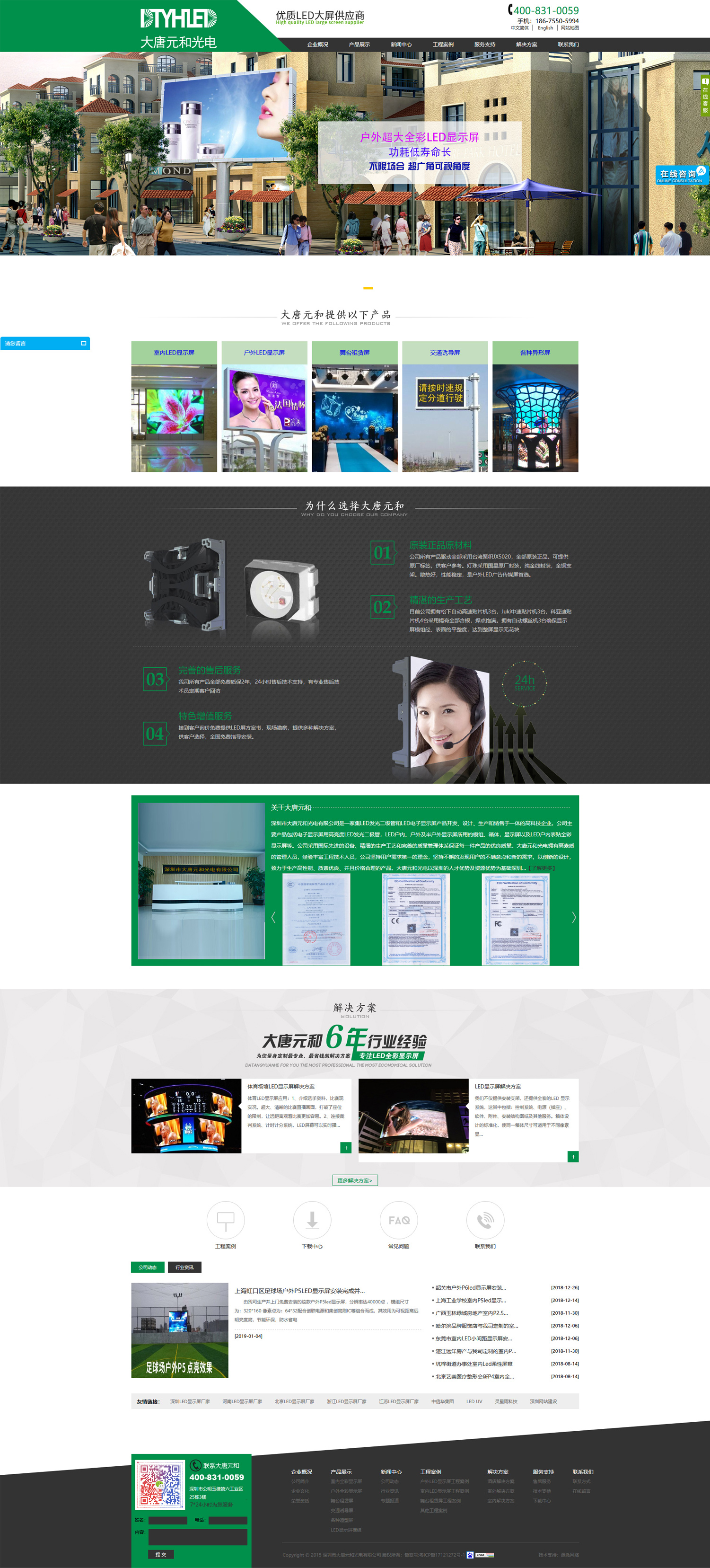 結(jié)合大唐元和的logo元素及l(fā)ed顯示屏行業(yè)的屬性,將網(wǎng)站主色調(diào)定位綠色,將黑白色作為輔助色,使網(wǎng)站整體保持著清簡潔明了的設(shè)計(jì)風(fēng)格