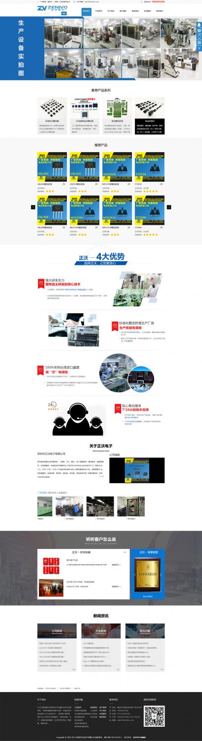 結合電子元器件行業(yè)及正沃企業(yè)元素,網站建設整體采用藍色。