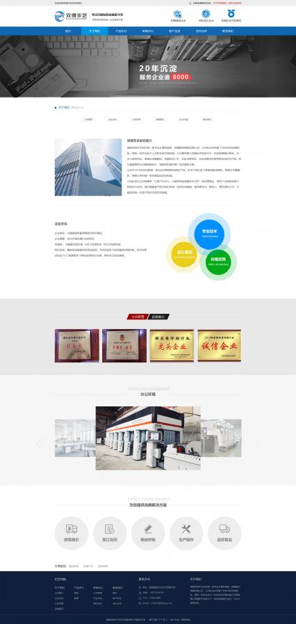 結(jié)合包裝印刷行業(yè)特征及雙得豐藝企業(yè)元素,網(wǎng)站設(shè)計采用藍(lán)色作為網(wǎng)站主色調(diào),使網(wǎng)站風(fēng)格保持著簡潔明了的環(huán)保屬性。
