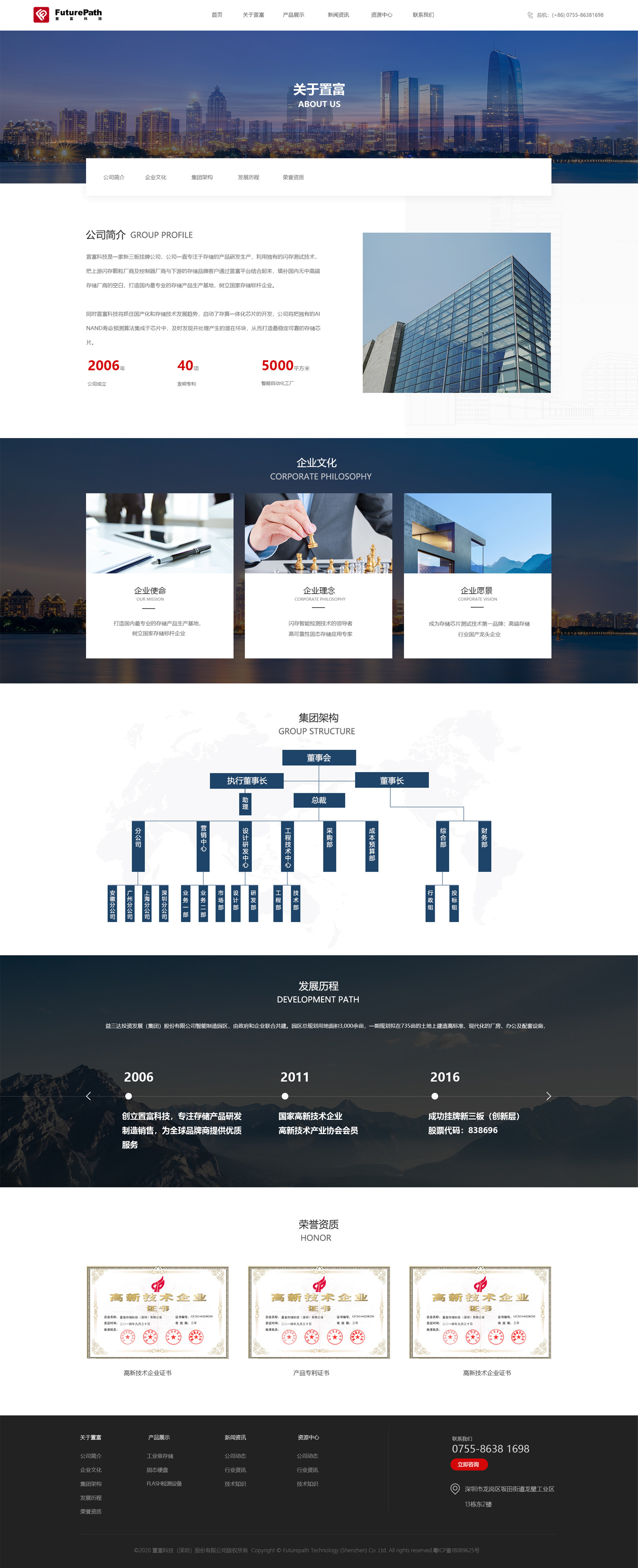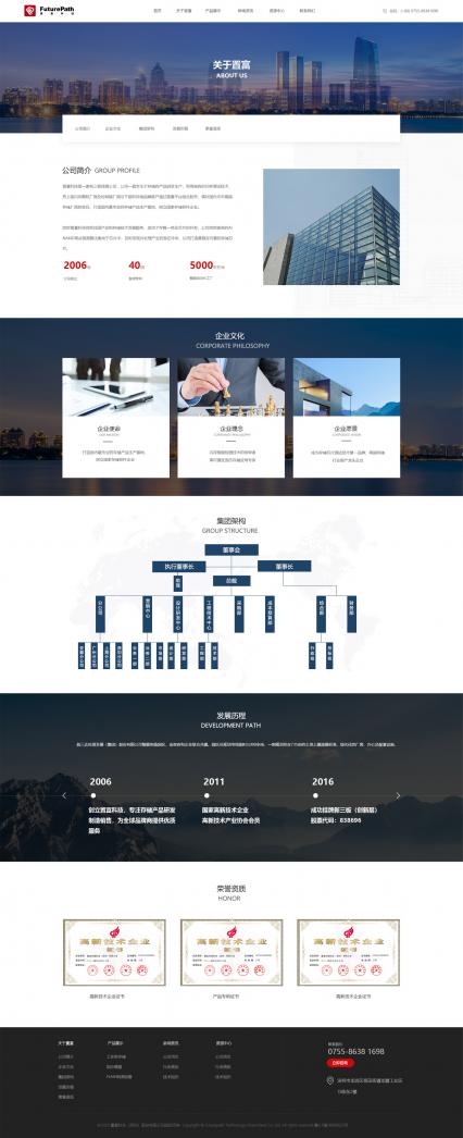 網(wǎng)站設計風格結(jié)合置富科技品牌調(diào)性,采用藍色系作為主色調(diào),紅黑作為點綴。整體風格簡約大氣二不失厚重感。