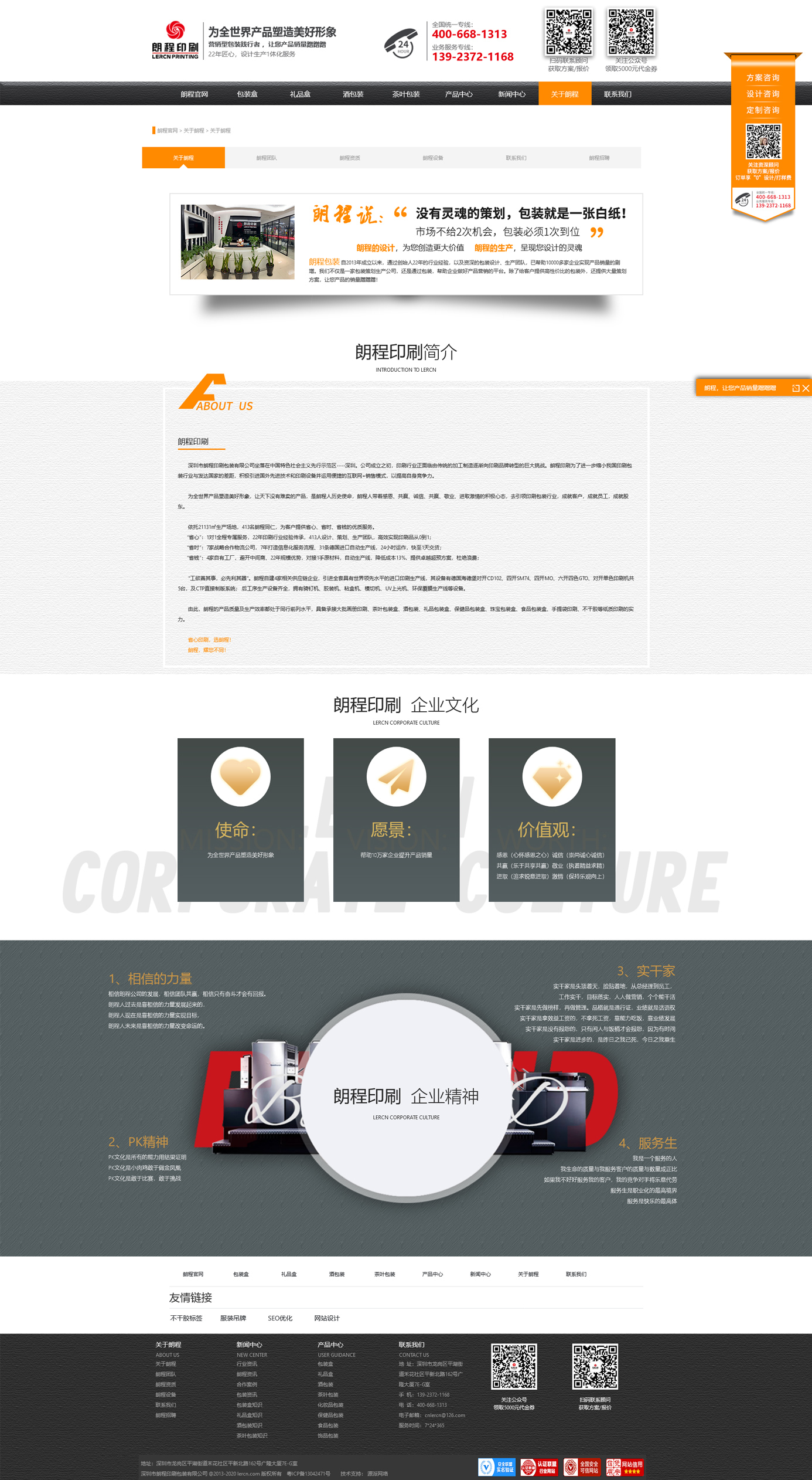 該包裝印刷網站建設目標是以營銷推廣為導向,網站布局考慮搜索引擎友好度。包裝印刷網站設計主題色采用橙色系,整體風格瀏覽比較清爽。