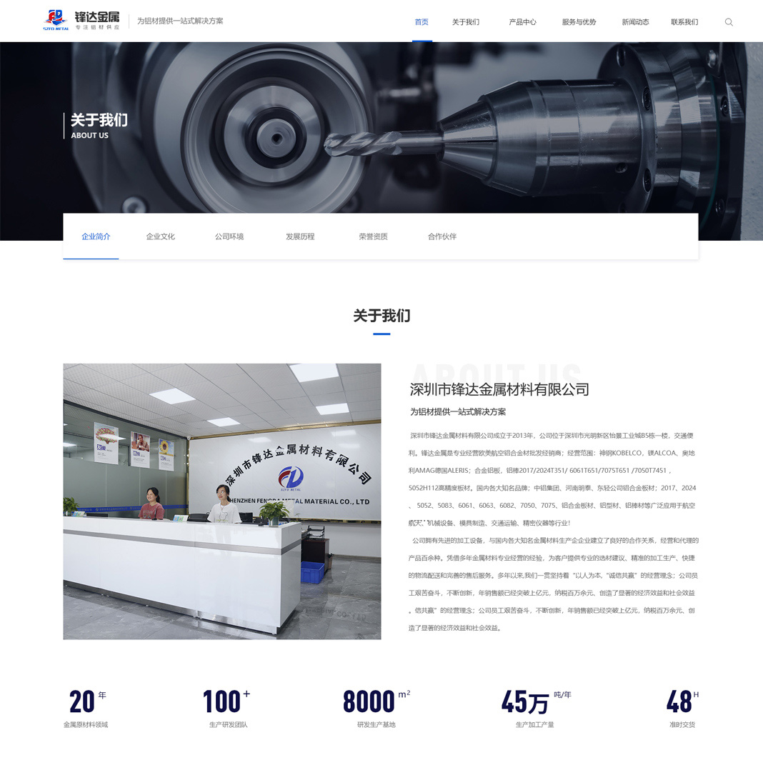 項目背景鋒達(dá)金屬成立于2013年專為鋁材提供一站式解決方案的企業(yè),基于鋒達(dá)金屬提升品牌形象和加強網(wǎng)站運營的建站目標(biāo),根據(jù)鋁材網(wǎng)站制作的特點全面策劃設(shè)計,圍繞用戶體驗、視覺呈現(xiàn)及SEO友好展開網(wǎng)站的搭建。