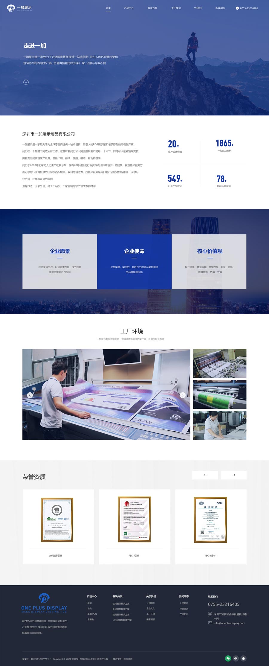 項(xiàng)目背景一加展示是一家致力于為全球零售商提供一站式POP展示架和包裝陳列的終端生產(chǎn)商?;谝患悠髽I(yè)對(duì)網(wǎng)站的需求定位主要以提升品牌形象加強(qiáng)營(yíng)銷力為主,展開對(duì)展示架網(wǎng)站建設(shè)整站的策劃設(shè)計(jì)。