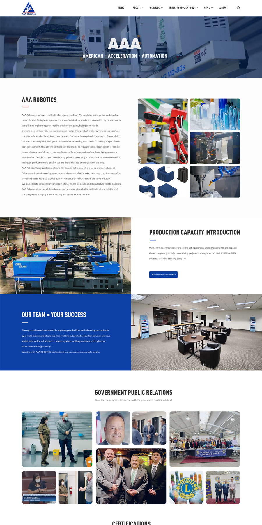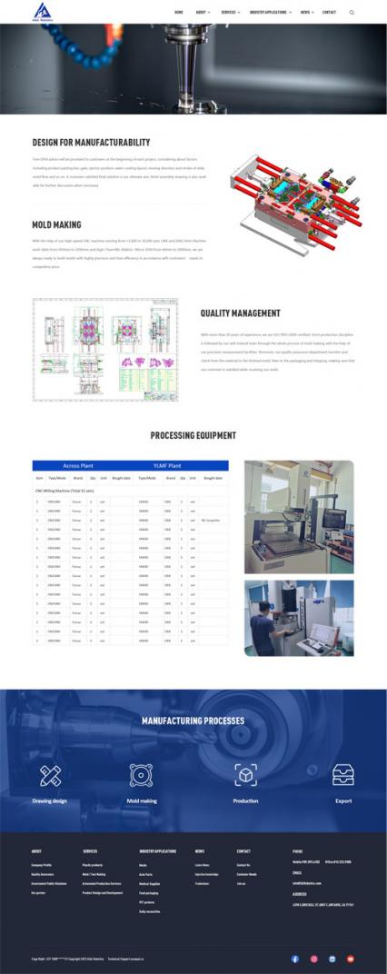 基于駿豐模具品牌元素及產(chǎn)品屬性采用科技藍(lán)為主色調(diào),在網(wǎng)站顏色上大面積整體色調(diào)采用了藍(lán)色調(diào),再用紅色調(diào)加以點(diǎn)綴,不僅讓網(wǎng)站視覺上更美觀大氣,且網(wǎng)站也不會顯得太過單調(diào)。