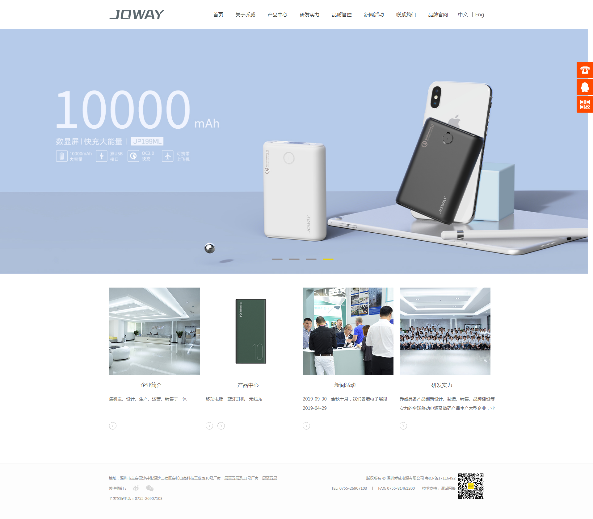 圍繞喬威電源logo元素屬性及3C數(shù)碼行業(yè)特征,網(wǎng)站設計主色系采用黃色,網(wǎng)站整體保持著清晰明了的設計風格。