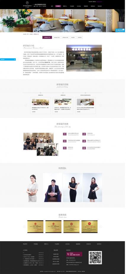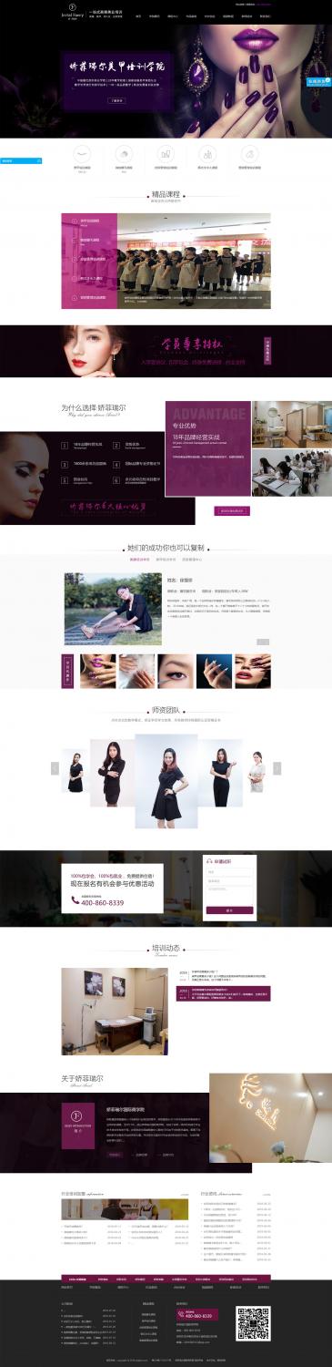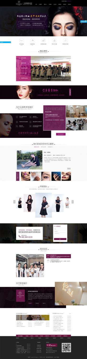 結(jié)合嬌菲瑞爾的logo元素及美業(yè)培訓的行業(yè)屬性,將網(wǎng)站主色調(diào)定位紫色,將黑色作為輔助色,網(wǎng)站整體風格保持著時尚簡約的風格